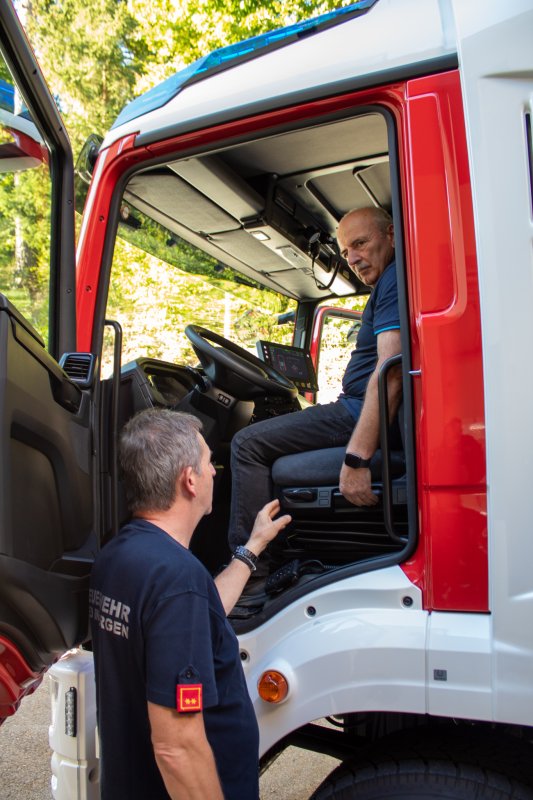 Zur Übergabe im Feuerwehrhaus Oed in Bergen waren neben den Kameradinnen und Kameraden auch Vertreter der Gemeinde, darunter Bürgermeister Wolfram Moshammer sowie Mitglieder des Gemeinderates, anwesend.